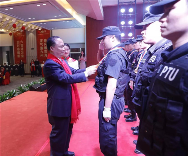 晚會最為隆重的環節,當屬劉主席親自登臺為集團PTU快速反應小組授予榮譽勛章。“PTU”自成立以來,承擔起守衛集團資產安全,保障集團大型活動等重要安全防范任務,2018年“PTU”累計參與內外項目應急處突,大型活動安全保障20余場次,他們快速行動、快速反應,為集團后勤管理樹立了一道安全的保護屏障。劉主席在授勛時勉勵小組全員,繼續努力、勇于擔當、快速反應、高效執行,堅決為集團發展保駕護航!
