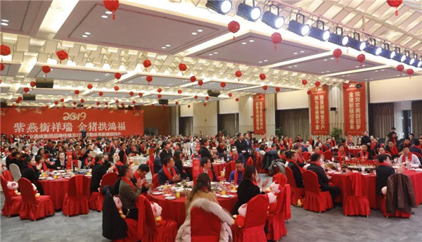 集團副總裁黃其剛在致辭中表示,在劉漢元主席的堅強帶領下,37年來,全體通威人不忘初心、砥礪前行,始終站在中國企業創新變革的最前沿,始終聚焦農牧與新能源兩大主業,始終致力于打造“三個世界級龍頭”的宏偉目標!經過十余年的精心布局,通威集團已打造出具有自主知識產權的完整新能源產業鏈。2018年集團年度銷售收入已超過700億元,品牌價值突破550億元,劉主席先后榮獲“改革開放40年百名杰出企業家”、“全國優秀企業家”、“中國年度經濟人物”、“中國十大新能源年度人物”等數十項重磅殊榮!這些來之不易的成就,是在劉主席的關心和帶領下,擼起袖子干出來的,是全體員工揮灑汗水拼出來的!致辭最后,黃總與集團品牌傳播與行政后勤體系管理團隊共同舉杯,向劉主席及各位領導、嘉賓一年來的關心和幫助致以誠摯的感謝,并致以新春佳節的美好祝愿!
