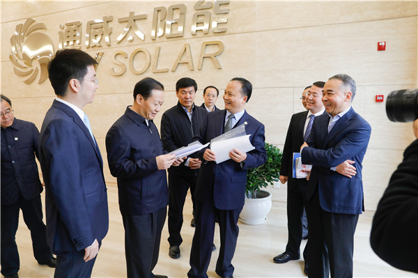 2018年11月14日,四川省委書記彭清華蒞臨通威太陽能成都公司調研。四川省委常委、成都市委書記范銳平,四川省副省長李云澤,成都市委副書記、市長羅強等陪同調研。