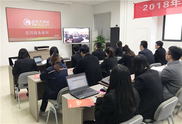 為提高供銷(xiāo)體系人員談判技巧與綜合素質(zhì),促進(jìn)公司整體發(fā)展再上新臺(tái)階。12月8日,通威大學(xué)光伏學(xué)院在合肥、成都兩地組織開(kāi)展了“商務(wù)談判實(shí)戰(zhàn)策略與技巧”培訓(xùn),本次培訓(xùn)邀請(qǐng)營(yíng)銷(xiāo)實(shí)戰(zhàn)專(zhuān)家擔(dān)任主講老師,來(lái)自供銷(xiāo)體系共計(jì)60余人參與學(xué)習(xí)。