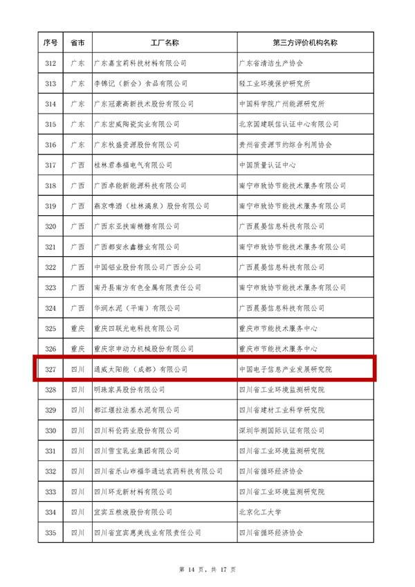 通威太陽能成都公司榮列國家級“綠色工廠”榜單