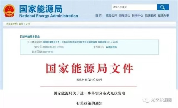2014年9月2日,國家能源局發布《關于進一步落實分布式光伏發電有關政策的通知 》,給予戶用光伏全額上網補貼。