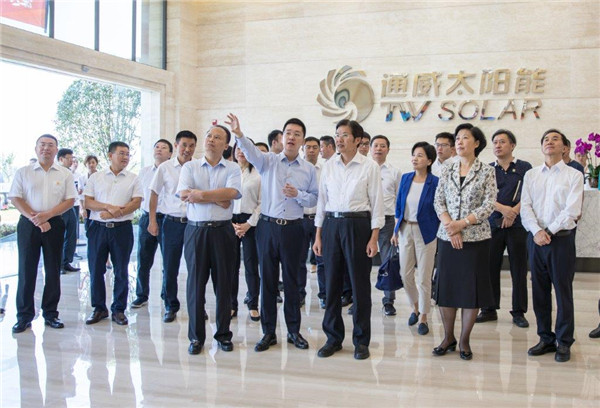高云龍主席一行參觀通威太陽能智能制造車間