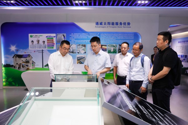 張勝書記一行首先參觀了通威集團體驗中心,詳細了解了通威綠色農業、新能源雙主業發展現狀及通威太陽能發展規劃、市場經營情況,并對通威36年來的發展成果及通威太陽能幾年內取得的優異成績給予了高度評價。