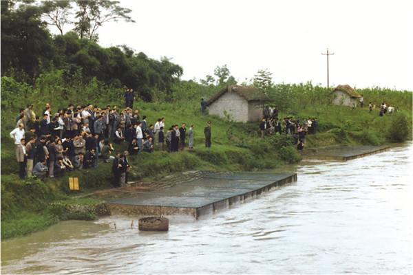 1984年,劉漢元主席發明的渠道金屬網箱式流水養魚試驗驗收現場