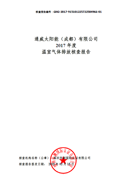 通威太陽能(成都)有限公司順利通過2017年度溫室氣體排放核查