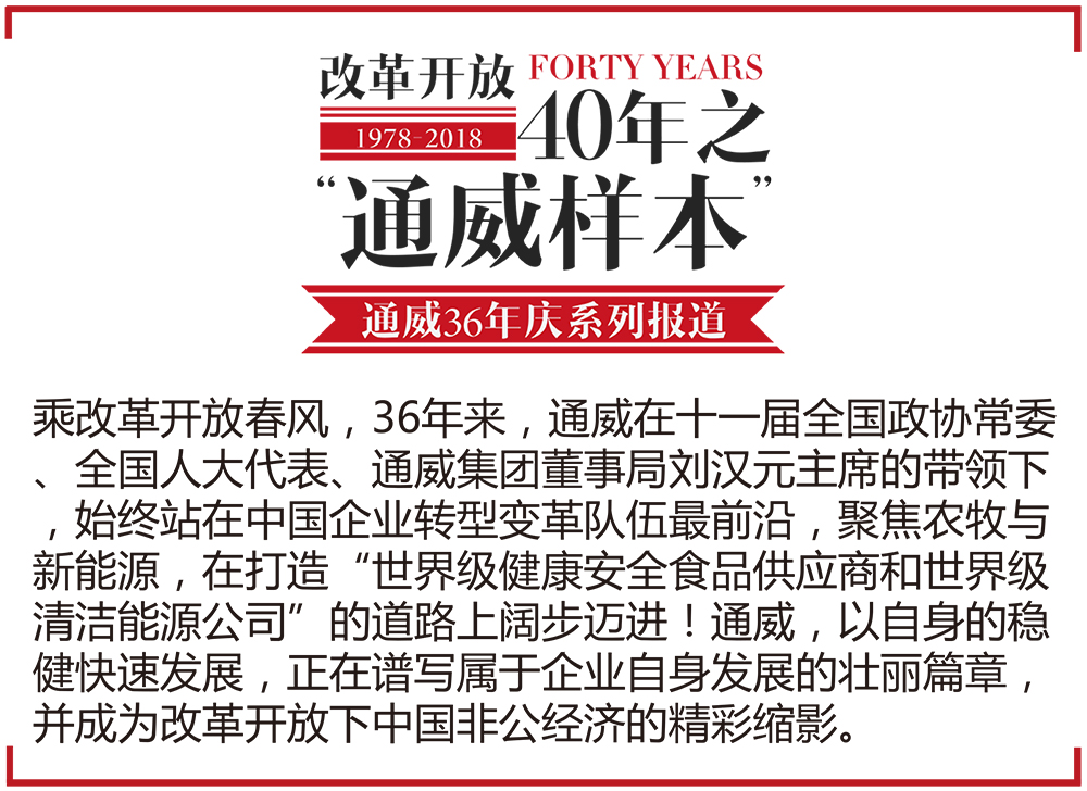 伴隨著改革開放的春風,36年前,從四川眉山永壽鎮一次重要的科技創新開始,在劉漢元主席的帶領下,通威穩扎穩打、步步為營,成為全球最大的水產飼料生產企業以及我國主要的畜禽飼料生產企業。在新時代,通威持續創新,以穩步堅實的前進步伐和繼往開來的胸襟,迎接水產行業的變革破局。