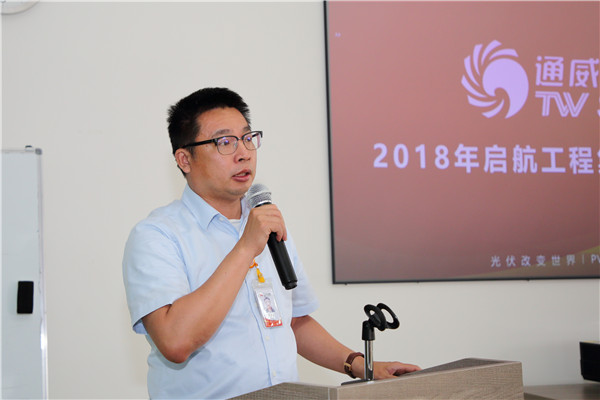 6月19日,通威太陽(yáng)能2018年“啟航工程”培訓(xùn)項(xiàng)目在成都基地正式啟動(dòng),來(lái)自全國(guó)各大高校的50余名應(yīng)屆生參加通威太陽(yáng)能2018年“啟航工程”第一期開(kāi)班儀式,通威太陽(yáng)能成都公司常務(wù)副總經(jīng)理蕭圣義、通威太陽(yáng)能人力資源總監(jiān)楊文棟、通威太陽(yáng)能成都公司電池二廠工藝部長(zhǎng)姚騫出席開(kāi)班儀式并致辭。