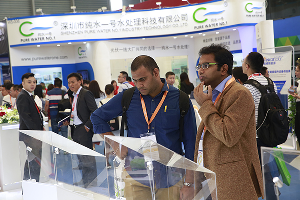 在通威展臺,劉漢元主席仔細(xì)查看通威展示產(chǎn)品