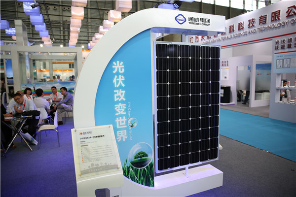 2014年SNEC的通威展臺上的通威太陽能組件產(chǎn)品