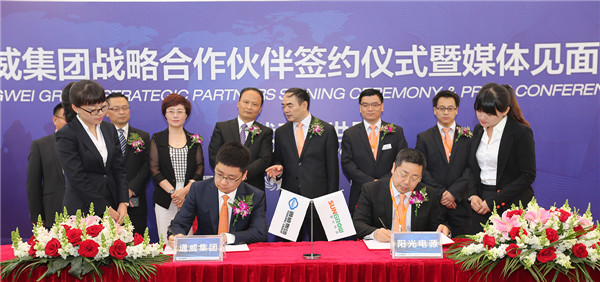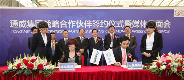 通威集團戰(zhàn)略合作伙伴簽約儀式,通威與陽光電源現(xiàn)場簽約