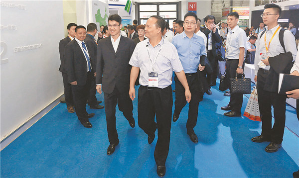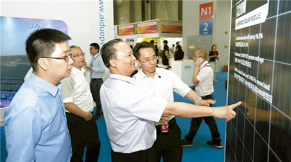 劉漢元主席在展會參觀了解展會上組件產(chǎn)品