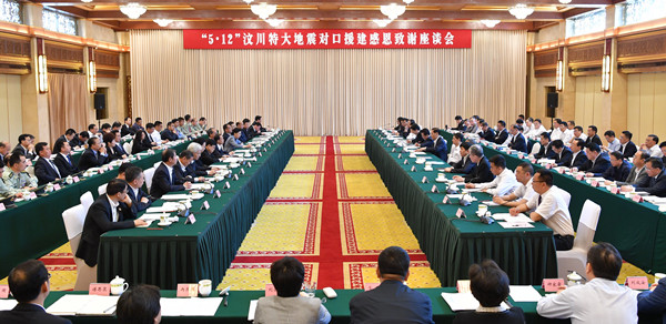 座談會(huì)上,四川省委彭清華書記代表省委、省政府和全省9100萬各族群眾向參與汶川特大地震抗震救災(zāi)和災(zāi)后恢復(fù)重建的中央有關(guān)部門、對口援建省市,向全國各族人民、人民子弟兵、企業(yè)家與慈善家和港澳臺(tái)同胞、海外僑胞、國際友人表達(dá)了感謝之情。在當(dāng)天下午舉行的“5·12”汶川特大地震抗震救災(zāi)十周年紀(jì)念儀式上,彭清華書記在講話中深切悼念了在地震中不幸罹難的同胞和在抗震救災(zāi)中捐軀的英雄,傳達(dá)學(xué)習(xí)習(xí)近平總書記、李克強(qiáng)總理關(guān)于防災(zāi)減災(zāi)重要指示批示,要求全省上下繼續(xù)弘揚(yáng)偉大抗震救災(zāi)精神,把對黨、對祖國、對全國人民的感恩之情轉(zhuǎn)化為做好各項(xiàng)工作的實(shí)際行動(dòng),奮力推動(dòng)治蜀興川再上新臺(tái)階。