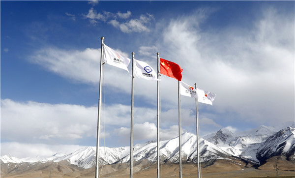 通威旗幟在昆侖山下迎風飄揚,作為通威人的我們感到無比自豪!