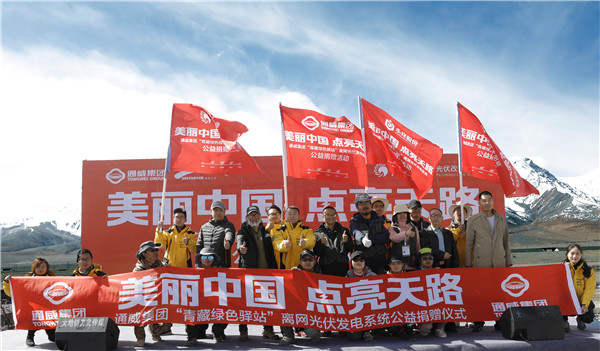 為積極響應(yīng)生態(tài)環(huán)境部2018年環(huán)境日主題“美麗中國,我是行動者”的號召,充分發(fā)揚(yáng)企業(yè)社會責(zé)任,通威集團(tuán)發(fā)起“美麗中國,點(diǎn)亮天路”主題活動,為青藏公路兩側(cè)的環(huán)保使者——“青藏綠色驛站”捐贈三套離網(wǎng)光伏發(fā)電系統(tǒng),輸送清潔的光伏電力。5月4日,通威集團(tuán)“青藏綠色驛站”離網(wǎng)光伏發(fā)電系統(tǒng)公益捐贈儀式在巍巍昆侖山下成功舉行。集團(tuán)副總裁黃其剛、綠色江河環(huán)保促進(jìn)會會長楊欣等嘉賓出席儀式,來自通威集團(tuán)、綠色江河環(huán)保促進(jìn)會的志愿者們共同見證了這一歷史時(shí)刻。