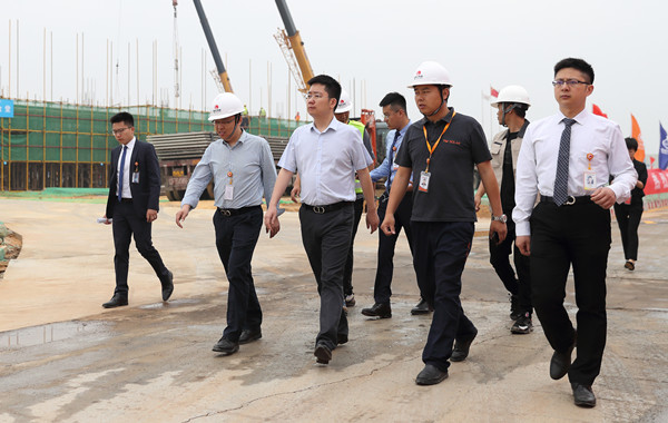 在三期項目、辦公樓施工現場,謝董事長現場查看工程進度,深入了解A1生產車間施工現場混凝土、鋼筋等整改情況,還不時提醒正在施工的工人注意安全。謝董事長還仔細詢問了安徽一期項目的工程進度、工程建設管理等情況。謝董事長強調,兩地各在建項目任務重、時間緊,大家辛苦了!雖時間緊迫,但仍堅決要將施工安全、施工質量放在首位,不能有絲毫松懈和大意,必須加強現場安全管理與施工質量管控。
