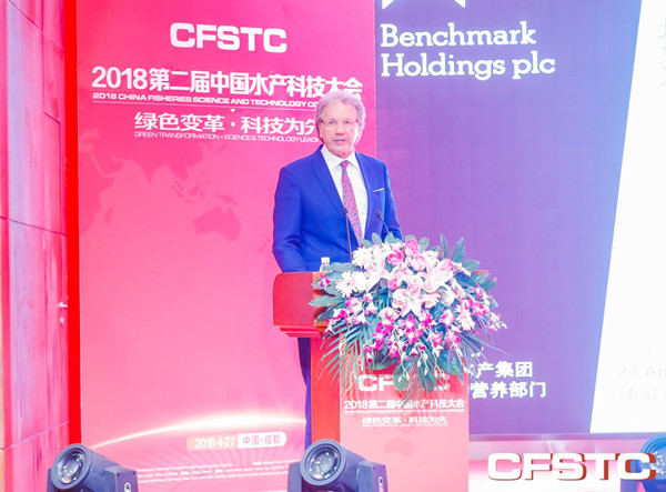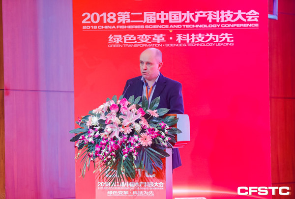 下午2時40分,英國BENCHMARK控股有限公司董事、比利時英偉水產集團全球總裁Philippe Leger以《技術推動可持續的對蝦養殖》為題作主題演講。
