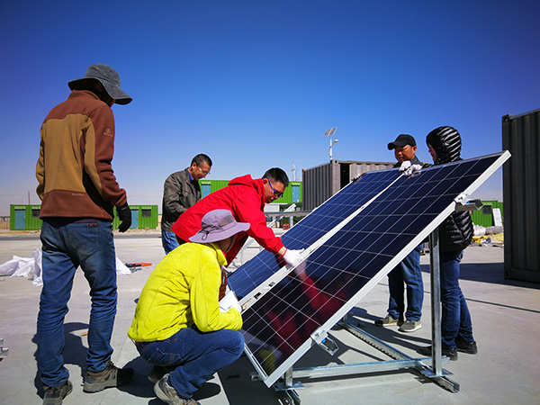 據了解,本次離網光伏發電系統的全部組件均由通威集團新能源產業鏈中游的通威太陽能有限公司提供;光伏系統安裝建設由產業鏈下游的通威新能源公司負責。為了準備高原氣候下的建設工作,負責項目建設的新能源工作人員4月13日就抵達了格爾木,對高原氣候工作下的器具、安裝輔材、相關物資等進行集中采購和準備。在光伏組件抵達格爾木后,項目工作人員迅速在“青藏綠色驛站”格爾木驛站開始了光伏發電系統的首次發電、調試工作。