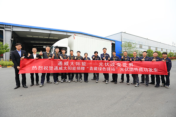 經(jīng)過與“青藏綠色驛站”發(fā)起者——四川省綠色江河環(huán)境保護促進會的積極溝通、確立電站設計方案,通威立即行動起來。4月13日,本次用于捐贈“青藏綠色驛站”昆侖山、三江源、風火山三處站點的光伏組件全部準備完畢,并在通威太陽能(合肥)有限公司成功發(fā)車。通威綠色能源挺進青藏“無人區(qū)”的征程正式開始了!