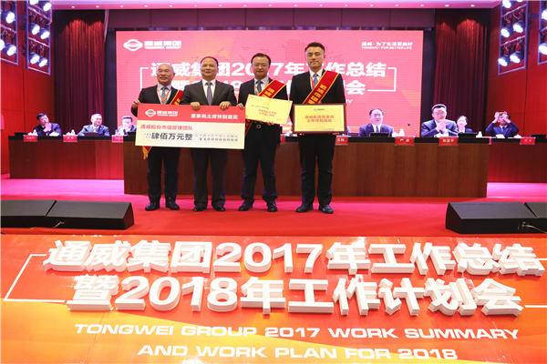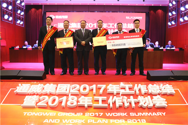 2017年,在全球經(jīng)濟(jì)逐步復(fù)蘇、國內(nèi)經(jīng)濟(jì)穩(wěn)中向好的宏觀背景下,全體通威人深入貫徹劉主席“揚(yáng)長砍短、戰(zhàn)略聚焦”八字方針,在挑戰(zhàn)與機(jī)遇中主動(dòng)出擊、順勢而為、乘勢而上,直面市場競爭,高效整合資源要素,創(chuàng)新發(fā)展,重點(diǎn)突破,精誠團(tuán)結(jié),取得了舉世矚目輝煌成績,贏得了行業(yè)內(nèi)外的廣泛尊重,向打造“三個(gè)世界級(jí)龍頭”的宏偉目標(biāo)又邁進(jìn)了一大步!作為每年表彰環(huán)節(jié)最激動(dòng)人心的時(shí)刻,通威集團(tuán)董事局主席特別嘉獎(jiǎng)隆重揭曉。