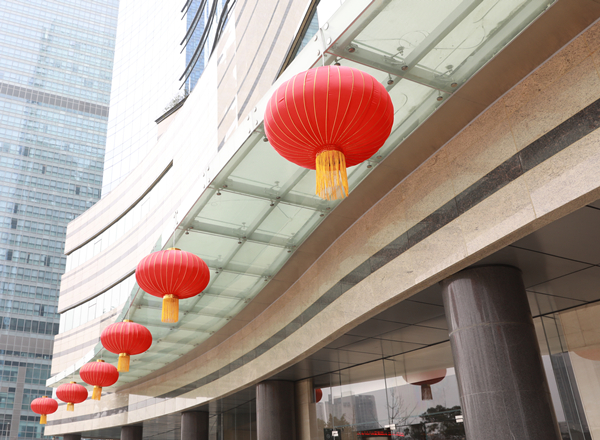 通威國際中心大樓處處張燈結彩、布置一新,迎接大家歸來