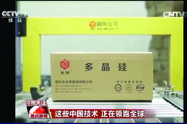 2017年6月30日,永祥股份5萬噸高純晶硅及配套新能源項目開工奠基儀式在樂山市五通橋區新型工業基地舉行。新華社現場聚焦,并于7月5日下午發布新聞稿,短短5小時,閱讀量突破60萬。7月9日晚22:00,中央電視臺《晚間新聞》播出《這些中國技術 正在領跑全球》新聞專題,其中以《全球最大高純晶硅生產線開建》為題,對永祥股份5萬噸高純晶硅及配套新能源項目開工奠基及其對行業影響、產業發展的重要意義進行了報道,并專訪了通威股份董事、永祥股份董事長兼總經理段雍。