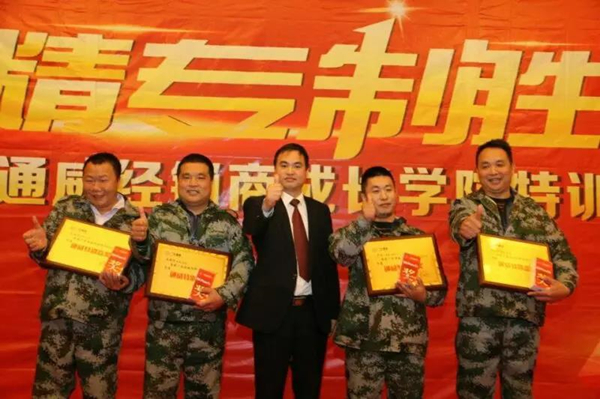 廖老板(右二)參加公司組織的經(jīng)銷商培訓(xùn)并獲得獎(jiǎng)勵(lì)