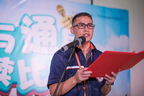 兩地比賽現場,102位來自公司各崗位的朗讀者們或鏗鏘激昂、或滿懷深情,將無聲的文字用真摯的情感訴說。《通威集團企業文化故事集》中的感人故事、《那些年,我們在一起的日子》中的精彩文章都備受選手們的青睞,獨具風格的原創作品也在現場贏得陣陣掌聲。來自合肥公司信息管理部的李琳,用深情的話語將同事的原創作品《秋日下的通威》娓娓道來;而成都公司行政部黃其淋等6人朗讀的《我是意氣風發的通威人》更是情感真摯、詩情飛揚。