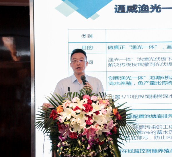 會上,通威集團光伏終端第一負責人陳星宇從漁業養殖到光伏技術,將通威“漁光一體”模式進行了全面展示。他表示,傳統“漁光互補”模式將光伏與魚塘單一疊加,暴露出“重光輕漁”的缺憾,區別于這一傳統模式,通威“漁光一體”模式“漁光并重”,將光伏與漁業的優質資源進行充分整合,促進漁業養殖的轉型升級,大幅提升池塘養殖畝產量,每畝池塘綜合利潤比單純水產養殖提高5-10倍,達到“光伏+漁業”一加一大于二的協同效應,真正實現了國土資源的立體開發。相信隨著以“漁光一體”為代表的跨界光伏產業在我國的不斷復制、推廣,不僅能大大提升我國空間、國土資源的復合利用率,實現產業的高效協同發展,而且能使太陽能這種最經濟、最清潔的可再生能源真正惠及全中國人民,促進并加快我國能源消費方式的轉變,從根本上緩解我國愈加沉重的環境、資源壓力,解決我國未來的能源供應問題。同時,以光伏新能源為代表的可再生能源的發展,必將推動并實現這一輪能源變革,兌現我國在巴黎氣候變化大會上做出的莊嚴承諾,也一定能為我們的子孫后代留住青山綠水、白云藍天!
