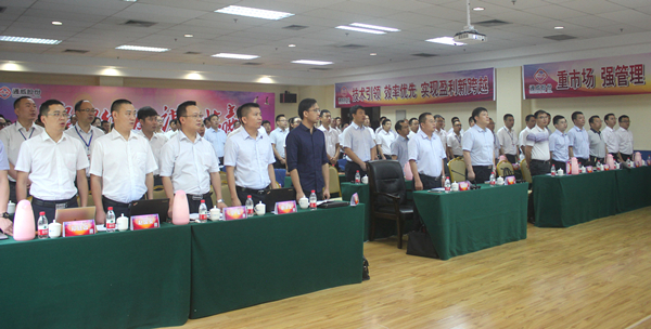 7月14-15日,通威股份華北戰區2017年上半年營銷工作總結會暨經營分析會在天津天寶會議中心隆重舉行。通威股份郭異忠總裁、通威股份副總裁兼技術總監張璐、通威股份總裁助理兼營銷總監喻明波、通威股份總裁助理兼華北戰區總裁周澎出席會議。本次會議對華北戰區2017年上半年營銷和經營管理工作進行總結,對存在的不足進行深入分析,在產品策略、營銷模式、水面運營、營銷管理和動保產品等方面進行宣貫、討論。會議明確了第三季度及全年經營目標,各公司總經理率領參會人員向股份領導作出莊嚴承諾和宣誓。