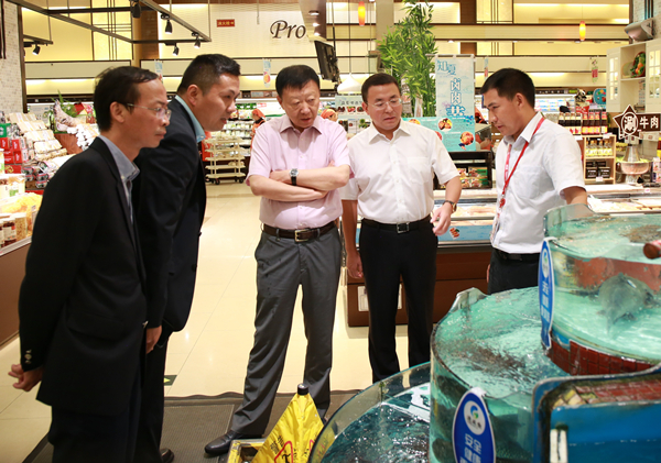 錢曉明董事長在黃總陪同下,參觀成都伊藤洋華堂高新店通威魚賣場
