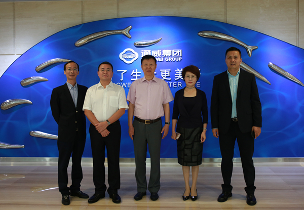 錢董高度評價了通威集團35年穩(wěn)健發(fā)展所取得的卓越成就,并點贊通威“漁光一體”創(chuàng)新發(fā)展模式。錢董表示,通威“漁光一體”模式通過各項先進技術(shù)的運用,有效解決養(yǎng)殖中的投喂、捕撈、排污等問題,真正實現(xiàn)了“水上發(fā)電、水下養(yǎng)魚”的雙綠色發(fā)展,并且實現(xiàn)了土地的綜合高效利用,值得大力推廣。