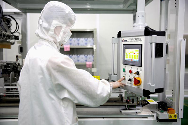 合肥公司電池一廠員工正在調試3號倒片機