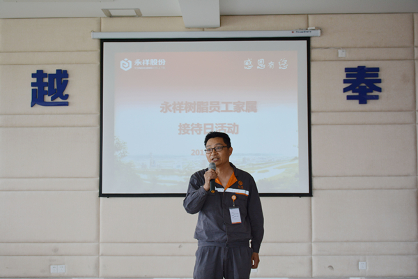 永祥樹脂總經(jīng)理助理李業(yè)新對(duì)所有到來(lái)的員工家屬表示熱烈歡迎,聽取大家的發(fā)言后,感謝家屬們對(duì)永祥的高度認(rèn)可。公司的發(fā)展與取得的成績(jī)離不開員工辛勤的付出,以及員工家屬的支持,員工是家庭的頂梁柱,更是公司的寶貴財(cái)富。在以后的工作中,上下同心,繼續(xù)發(fā)揚(yáng)良好的工作作風(fēng),愉快工作、認(rèn)真工作;希望員工扮演好自己的角色,承擔(dān)好家庭的責(zé)任。