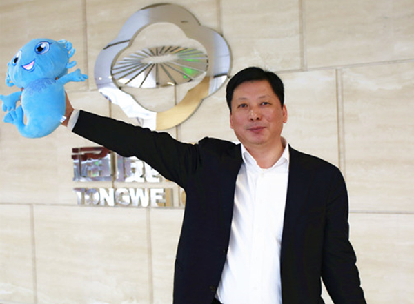 通威股份華中二區(qū)總裁幸鵬與小通仔合影