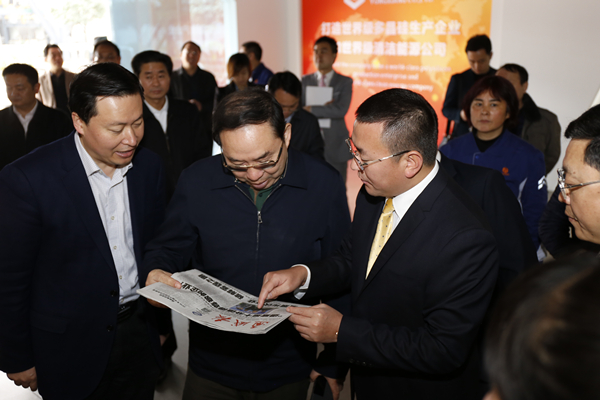 段雍董事長(zhǎng)向梅克保副局長(zhǎng)介紹永祥循環(huán)經(jīng)濟(jì)產(chǎn)業(yè)鏈發(fā)展情況