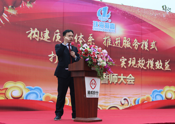 大會于8點整準時開始,所有通威海壹人整齊列隊,進行升旗儀式,在嘹亮的通威歌聲中,全體海壹人以飽滿的激情拉開2017新的篇章。珠海海壹總經理張奎在致辭中表示,2016年,珠海海壹全體員工在總經辦的正確領導下,發揚通威精神、銳意進取,冷靜應對日益激烈的行業競爭和異常嚴峻的經濟形勢,眾志成城克服市場疲軟、養殖成功率低等重重困難,讓公司的經營管理各項工作得到總部的充分肯定。張總表達了公司迎戰2017年的決心和信心,并號召公司全體員工團結一致,同心同德,全力以赴實現公司的奮斗目標。