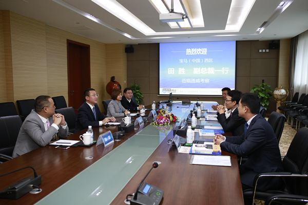 田勝副總裁對(duì)通威集團(tuán)的熱情接待表示感謝,他表示很早就在《成都商報(bào)》主辦的活動(dòng)上認(rèn)識(shí)了劉漢元主席,一直對(duì)劉主席和通威心懷敬意。田總介紹了寶馬(中國)西區(qū)發(fā)展規(guī)劃以及寶馬公司近年來在新能源汽車方面的研發(fā)成果及主推產(chǎn)品。田總表示,通威集團(tuán)多年穩(wěn)健發(fā)展,保持行業(yè)領(lǐng)軍地位的成功經(jīng)驗(yàn)值得學(xué)習(xí),尤其在新能源領(lǐng)域,通威的戰(zhàn)略布局及形成的完整光伏產(chǎn)業(yè)鏈,充分展現(xiàn)了通威集團(tuán)及劉漢元主席的高瞻遠(yuǎn)矚,寶馬公司一直致力環(huán)保與新能源應(yīng)用,希望雙方在新能源等領(lǐng)域加強(qiáng)合作交流,共謀發(fā)展。