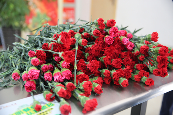 嬌艷欲滴的康乃馨被送到廣大女員工的手中