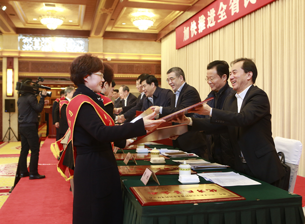 當天大會通報表彰了通威集團、永祥股份等100家優(yōu)秀民營企業(yè),通威集團禚玉嬌總裁,通威股份董事、永祥股份董事長兼總經(jīng)理段雍分別代表通威集團、永祥股份上臺領(lǐng)取“優(yōu)秀民營企業(yè)”獎牌。大會同時勉勵獲獎企業(yè)珍惜榮譽、再創(chuàng)佳績,大力弘揚“愛國、敬業(yè)、誠信、守法、貢獻”的價值取向,為推動全省經(jīng)濟加快發(fā)展做出更大貢獻。會后,禚玉嬌總裁與段雍董事長參加了當天下午舉行分組討論,為推進四川民營經(jīng)濟發(fā)展積極建言獻策。