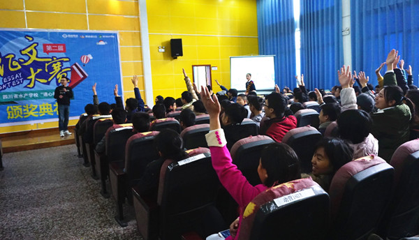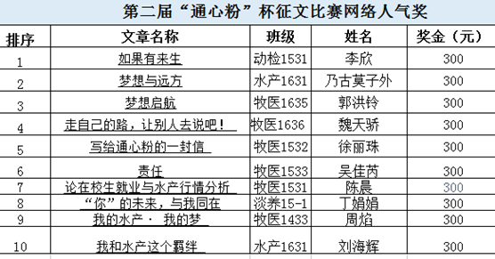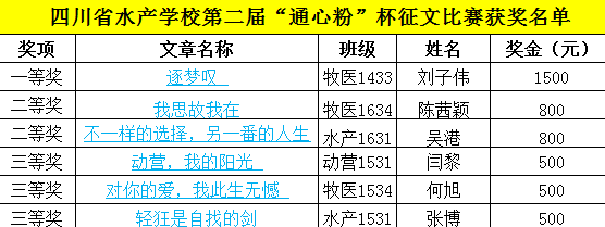 “至水校,皆為習牧者、漁者之屬。初時,余巡水校一遭,覺水校鳥語絮絮、草卉凈植、錦鱗淺池,可覺神爽氣清。”2014級畜牧專業的劉子偉同學憑借這篇文言文體《逐夢嘆》斬獲征文比賽一等獎桂冠,獲得1500元現金大獎。劉子偉是大三學生,已經到了實習時間,特意為此次活動留在了學校。領獎時,他幽默風趣,在現場與同學們互動問答,拋出“能力和努力哪個更重要?”“如何通過創新出彩?”等話題,贏得陣陣掌聲,并鼓勵同學們在校多努力、多嘗試,夢想就一定有實現的可能。