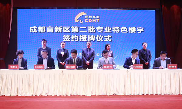 自今年3月3日《〈成都高新區專業特色樓宇培育機制和專項優惠政策〉實施細則》發布及第一批專業特色樓宇培育計劃啟動以來,已有84家企業獲得近1500萬元專業特色樓宇專項扶持資金支持。第一批專業特色樓宇入駐面積28.25萬平方米, 入駐率基本達到目標要求。此次簽約儀式上,成都高新區管委會與通威國際中心、太平洋保險金融大廈、譽峰M3、新成國際、銀泰城5個樓宇業主/運營商代表簽訂了成都高新區第二批專業特色樓宇培育合作框架協議,并為第二批31家專業特色樓宇授牌。