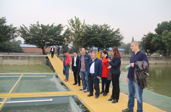 當天下午,參會人員一行到課題實施現場通威水產科技園參觀交流,先后參觀了通威健康網箱養殖池、工廠化養殖車間、“365”健康養殖模式示范塘、挪威全自動化投料系統、挪威全自動化投料系統、通威PRAS養殖示范塘、通威電化水處理設備、通威集裝箱養殖等。參會人員詳細地了解了通威在圍繞養殖投入品高效利用、池塘養殖水質修復與凈化、高效養殖方面所做出的成果以及創新開發的多種先進養殖模式。參觀過程中,大家還進行了現場交流,為下一步課題各實施單位間技術成果集成應用與示范推廣打下堅實基礎,促進各單位之間更深入、更緊密的合作。