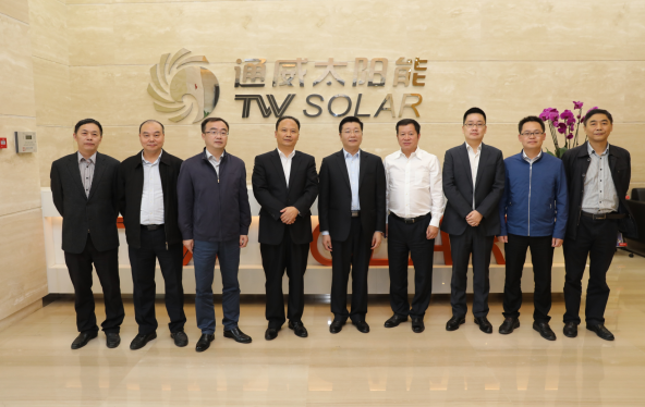 10月27日,成都市委常委、市總工會主席吳凱,市委副秘書長易恩弟率市經信委、市科技局、市投促委等部門領導一行蒞臨通威太陽能(成都)有限公司參觀調研,雙流區委周先毅書記、區委常委韓超陪同調研。十一屆全國政協常委、通威集團董事局劉漢元主席,通威太陽能(合肥、成都)有限公司董事長謝毅熱情接待。