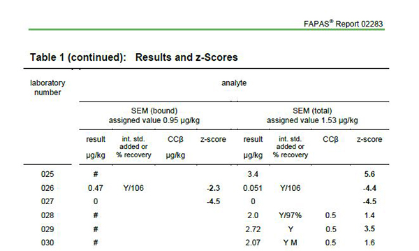 FAPAS認證結果(硝基呋喃)