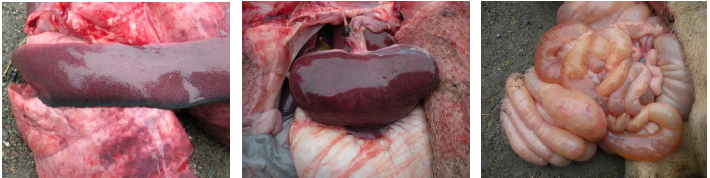 蓉崍通威技術老師在接到消息后,迅速趕至羅大姐家對死豬進行檢查。技術老師解剖后發現,豬瘟和副傷寒癥狀非常明顯??赡肛i豬瘟苗一直按程序在做,以前從未發生過這樣的情況。在全面了解了豬場生產情況后,技術人員發現問題出在母豬飼料環節。